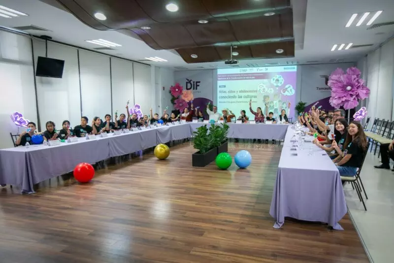Ciudad Victoria, Tamaulipas.- Para continuar trabajando en la promoción y difusión del derecho que tienen los menores a la libertad de convicciones éticas, pensamiento, conciencia, religión y cultura, el Sistema para el Desarrollo Integral de la Familia de Tamaulipas, presidido por la doctora María de Villarreal, con el apoyo de personal del Sistema Nacional DIF, llevó a cabo el foro híbrido “Niñas, Niños y Adolescentes Conociendo las Culturas”.