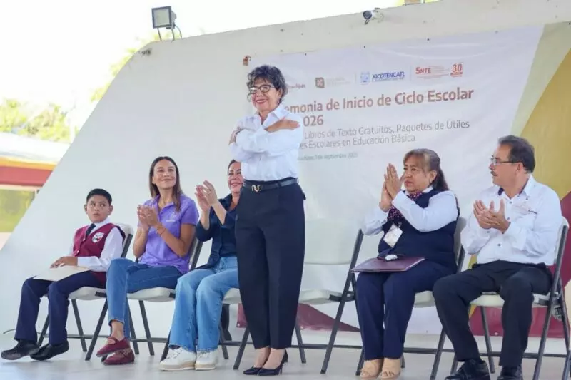 Xicoténcatl, Tamaulipas.– Atendiendo la encomienda del gobernador Américo Villarreal Anaya, la secretaria de Bienestar Social, Silvia Casas González, puso en marcha el ciclo escolar 2025-2026 en la escuela primaria “Hermanos Flores Magón” del municipio de Xicoténcatl, en un evento cívico de patriotismo y entusiasmo.