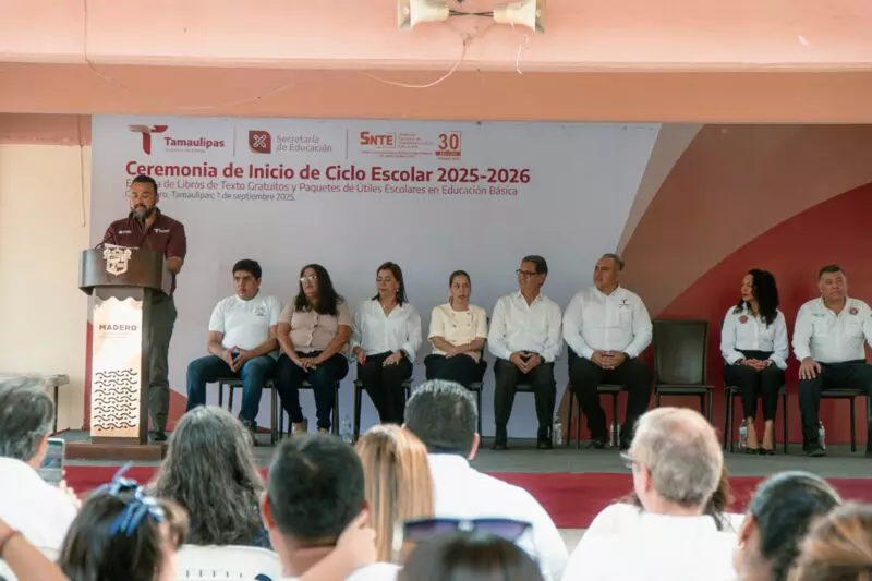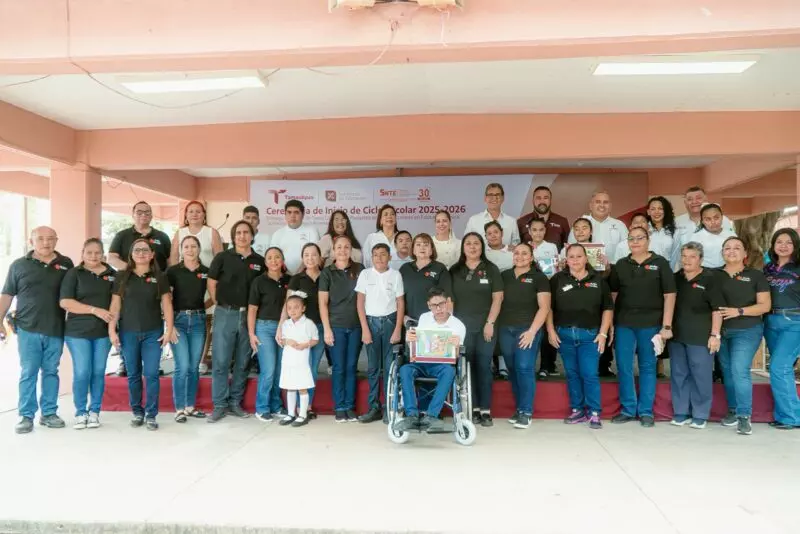 Ciudad Madero, Tamaulipas.- En representación del gobernador de Tamaulipas, Américo Villarreal Anaya, el secretario de Turismo en el estado, Benjamín Hernández Rodríguez, acudió al Centro de Atención Múltiple «Profra. Luz Esthela Céspedes García”, de Ciudad Madero, para dar inicio al ciclo escolar 2025-2026.