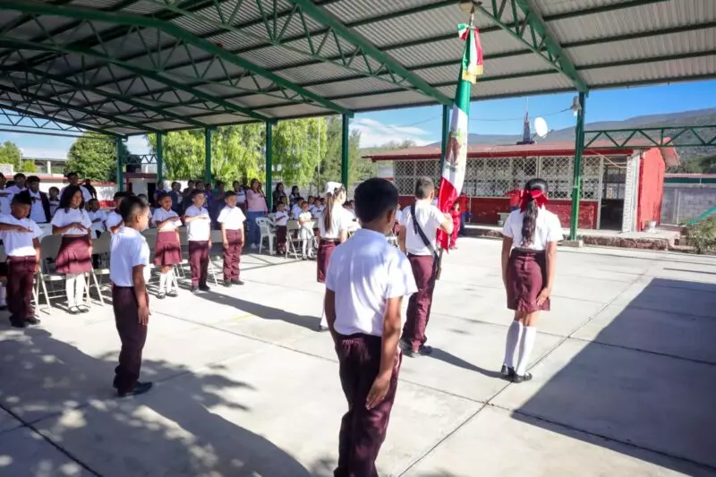 La ceremonia se realizó dentro del marco de actividades con motivo del regreso a clases, acto simultáneo que se llevó a cabo este 01 de septiembre en los 43 municipios de la entidad.
