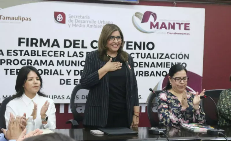 El Mante, Tamaulipas.- Con la firma de un convenio de coordinación entre la Secretaría de Desarrollo Urbano y Medio Ambiente (SEDUMA) y el Gobierno Municipal de El Mante, inició un proceso clave para actualizar el Programa Municipal de Ordenamiento Territorial y Desarrollo Urbano (PMOTDU). Este acuerdo establece las bases para garantizar un crecimiento ordenado, sostenible y con visión de futuro en beneficio de las familias mantenses.
