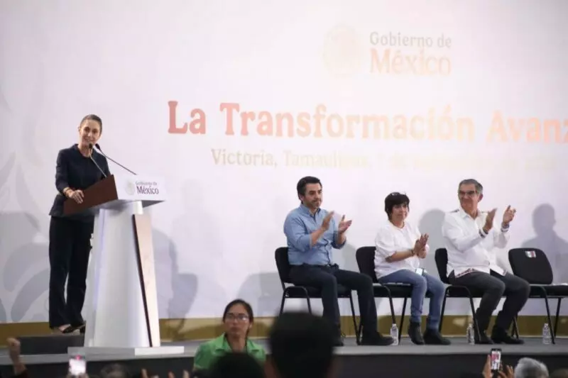 La presidenta mencionó el desarrollo del Puerto del Norte en Matamoros, el Polo de Desarrollo en Altamira y la carretera del Corredor del Golfo de México, entre Tampico y Reynosa, además de la construcción en Tamaulipas de 36 Centros de Educación y Cuidado Infantil.