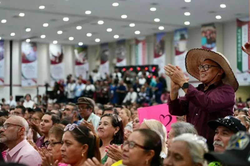 Detalló que 402,052 adultos mayores reciben su pensión, así como 28,187 personas con discapacidad; 4,869 tienen el apoyo del programa Jóvenes Escribiendo el Futuro; 103,478 adolescentes son becarios en preparatorias; 36,547 niñas y niños de escuelas primarias tienen acceso a una beca y también se apoya a 11,991 pescadores; 27,752 pequeños productores reciben el apoyo Producción para el Bienestar; 24,328 productores han sido beneficiados con fertilizantes y 110,237 son beneficiarios de Leche para el Bienestar.