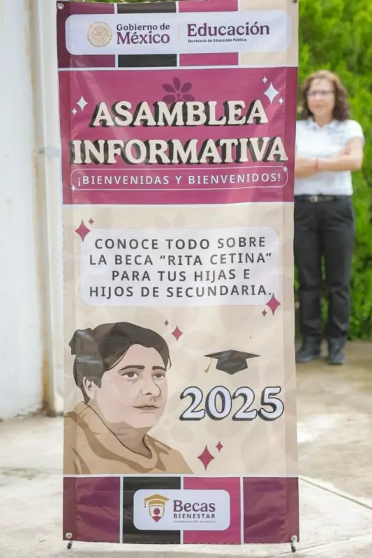 Valdez García participó en la Asamblea Informativa sobre este apoyo federal realizada en la Secundaria N.° 2 “Rafael Ramírez”, ahí expresó que cuidar la cobertura, cuidar la permanencia y cuidar la calidad son los tres mandamientos de cualquier secretario de Educación, y que la Beca “Rita Cetina” ayuda mucho para cumplir con los dos primeros.