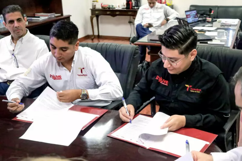 Ciudad Victoria, Tamaulipas.- Conscientes de la importancia de impulsar y fortalecer el desarrollo profesional y personal de la población joven, el Instituto de la Juventud de Tamaulipas (INJUVE), y el Colegio de Bachilleres del Estado de Tamaulipas (COBAT), celebran la firma de un convenio de colaboración en lo que refiere a servicio social y prácticas profesionales.