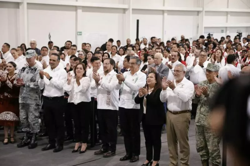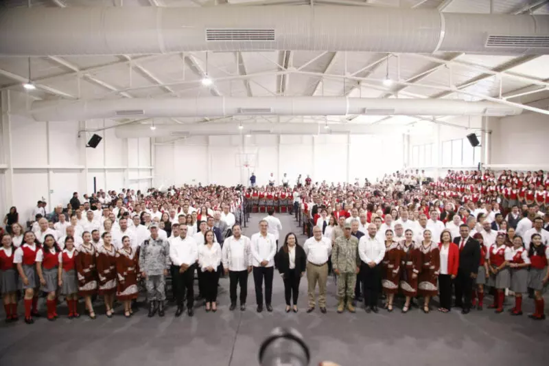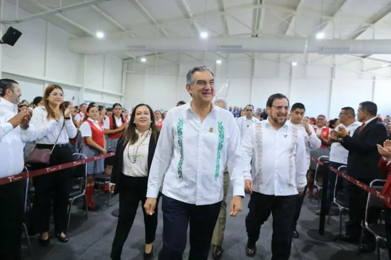“Hace más de 30 años, un gobernador de voluntad y trabajo, el ingeniero Américo Villarreal Guerra, entregó en este mismo lugar una techumbre que por años fue refugio y punto de encuentro de la comunidad normalista, y hoy aquel legado, que se convirtió en un símbolo de confianza en el futuro, es honrado y prolongado por nuestro gobernador Américo Villarreal Anaya”, expresó.