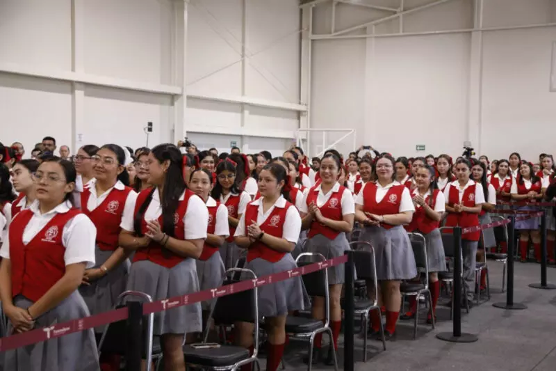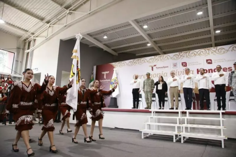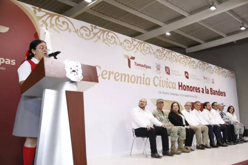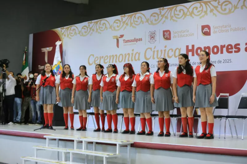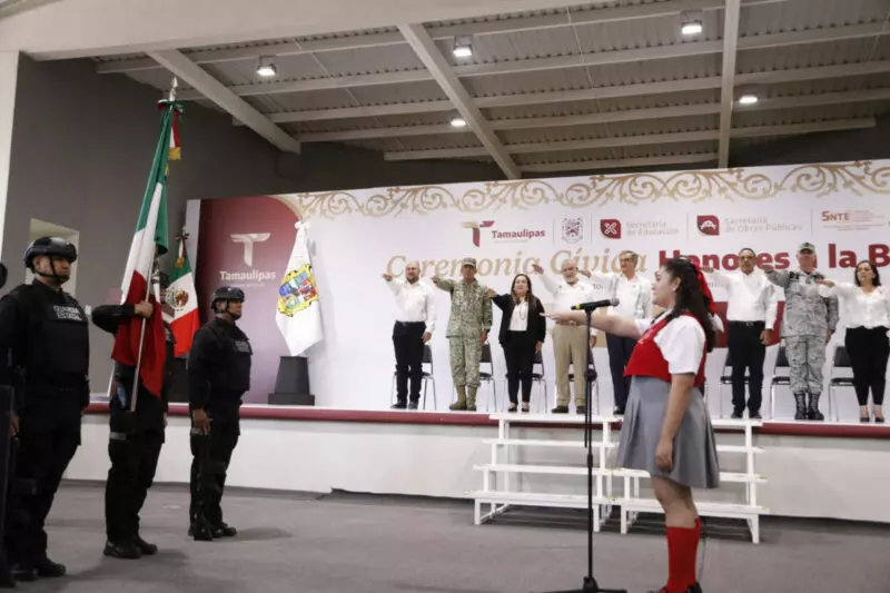 En la ceremonia cívica de honores, ante más de 400 alumnas, agregó que en Tamaulipas la transformación comienza en la escuela, “y a ustedes les corresponde garantizarlo”, afirmó.
