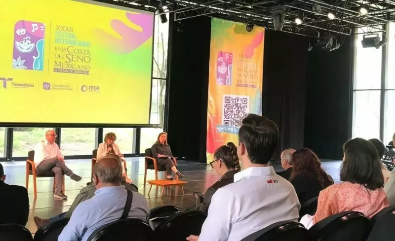 Ciudad de México.-A nombre del gobernador Américo Villarreal Anaya, Silvia Casas González, secretaria de Bienestar Social de Tamaulipas dio a conocer en la Ciudad de México, junto al director general del ITCA, Héctor Romero- Lecanda, la programación de artistas y pormenores de trigésima segunda edición del Festival Internacional en la Costa del Seno Mexicano.