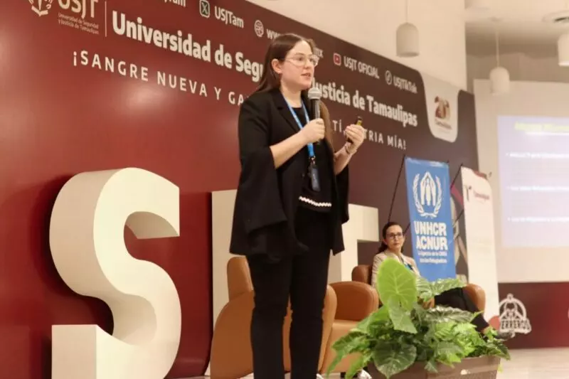Ciudad Victoria, Tamaulipas.- El Instituto Tamaulipeco para los Migrantes, en coordinación con el Alto Comisionado de las Naciones Unidas para los Refugiados (ACNUR), promovió la magna conferencia “Protección de personas desplazadas por la fuerza y con necesidades de protección internacional en Tamaulipas”, con el objetivo de fortalecer las capacidades institucionales y ampliar el conocimiento en materia de desplazamiento forzado y protección internacional, impartida en el Auditorio de la Universidad de Seguridad y Justicia de Tamaulipas.