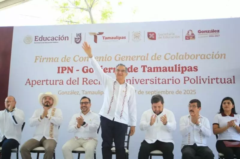 González, Tamaulipas. – El gobernador Américo Villarreal Anaya firmó el convenio de colaboración con el Instituto Politécnico Nacional e inauguró el Recinto Universitario Polivirtual, una nueva plataforma académica con la calidad y la excelencia educativa que distingue a esta prestigiada institución y que, por primera vez, se pone en marcha en todo el país.