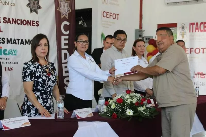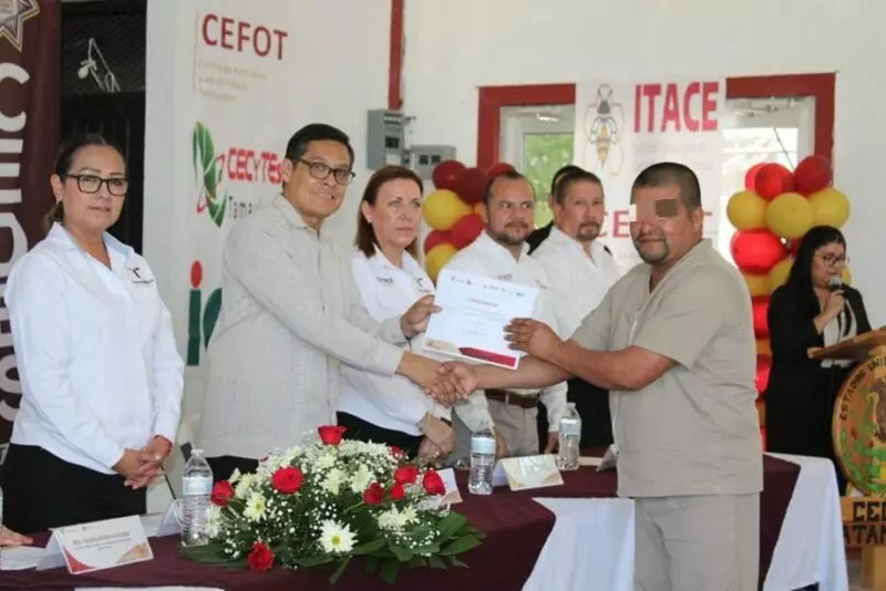 Los documentos se entregaron en el salón de usos múltiples del módulo varonil y fue presidido por autoridades estatales, penitenciarias, del Instituto Tamaulipeco de Capacitación para el Empleo (ITACE), y del Instituto de Capacitación para el Trabajo (ICAT).