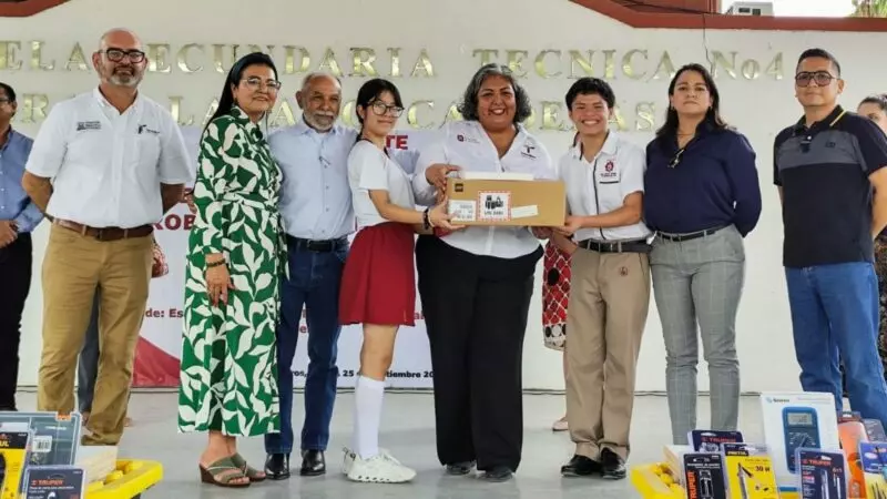Destacó que, con esta entrega, se reafirma el compromiso del gobernador del Estado, Américo Villarreal Anaya, de impulsar la innovación tecnológica entre las y los jóvenes de este nivel educativo, como parte de su formación integral en las aulas.